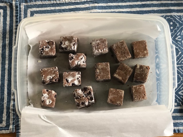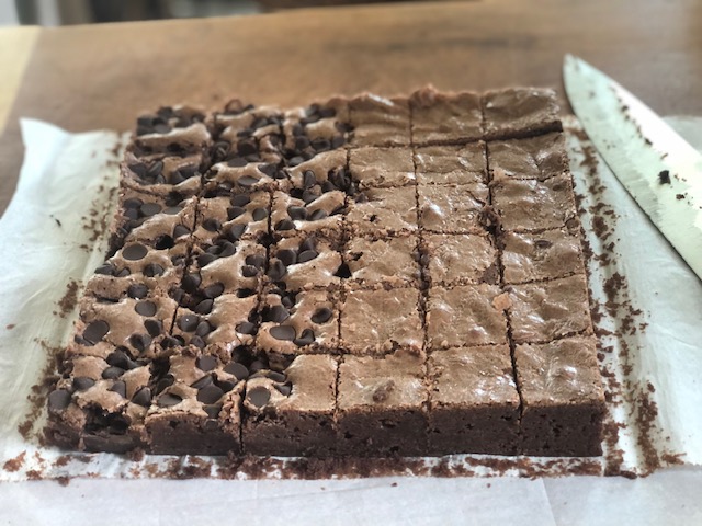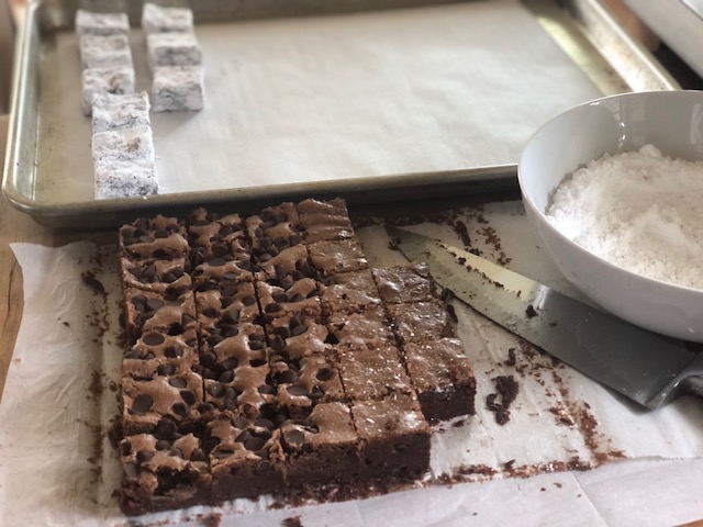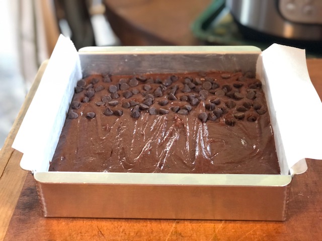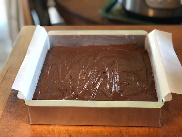 Time to line your loaf pan. Cut a 13″ x 15″ square of parchment.