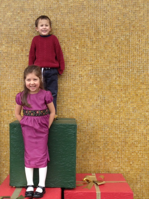 The show is a “kids” version, so it’s only an hour long – PERFECT!! Kids are getting wiggly. When the show is over, we go outside and try to coerce the children into taking holiday photographs. Not an easy task. And we take more pictures. We keep the kids from getting into the fountain. We take more pictures.