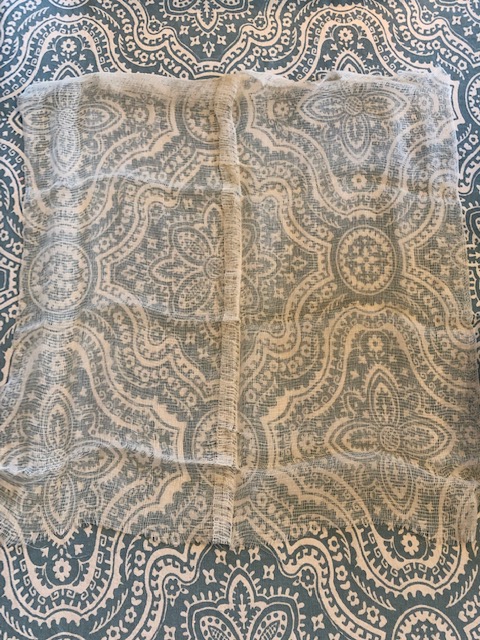 When looking through these fabrics, I wasn’t convinced that they would strain as efficiently as cheesecloth, so I kept looking. I bought a small amount of cheesecloth from my local craft store, and this cheesecloth seemed a bit sturdier than what I had found at the grocery store. When I opened it up, I found that it was folded in the same way that the grocery store version was, with the cut edges in the center: