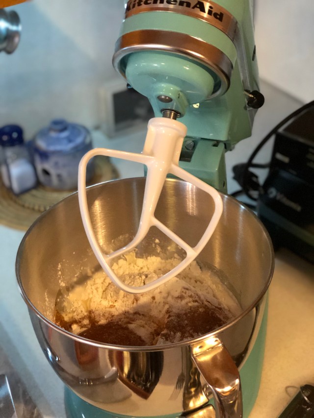 This may take a while. Scrape down the sides of the bowl as necessary. When it’s properly mixed, the dough will be softer, and still a bit elastic.