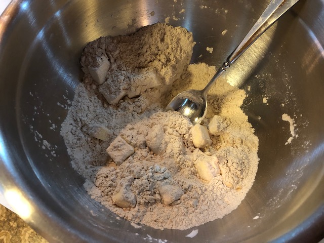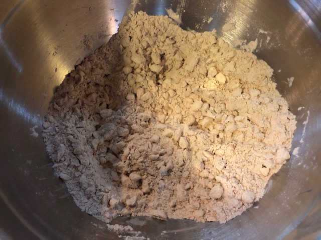 Now cut the butter in with a pastry cutter or two sharp knives. Should look like this.