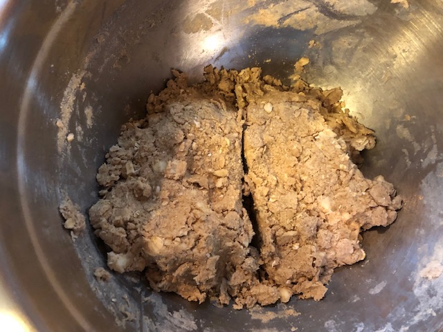 Now knead the dough a bit to bring it all together in the bowl.