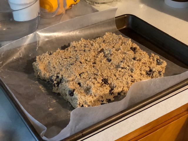 Oh, and if you really really want a cookie that looks and acts like a Specialty’s cookie, try this: take you cookie dough and spread it out about 1 inch thick onto a sheet of wax paper on a small tray or cookie sheet.