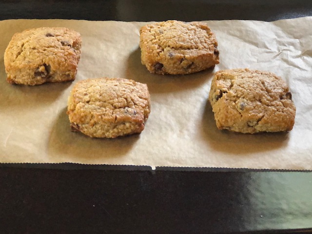 Flatten ever so slightly with your fingers. Place tray of dough in freezer and freeze for two hours. At this point you can bake the cookies, or place the frozen discs in a freezer bag and bake them a day later, or up to a month later. (I find it very handy to always have frozen cookie dough ready to be baked. You never know when a friend is going to drop by and you want to make something lovely, or you forgot about that potluck or bake sale.)