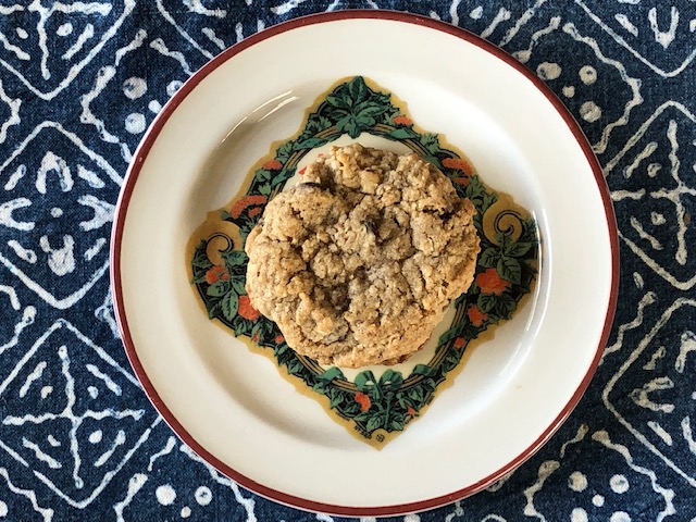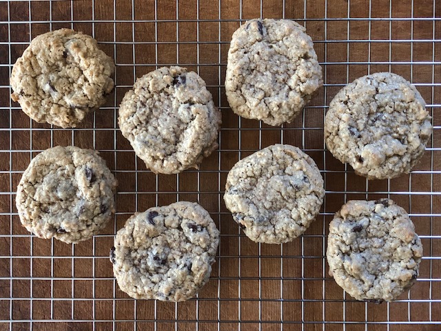 Sorry for all the chit chat. Here is the recipe, (adapted from Heather Carter’s Loaded Oatmeal Cookies), which makes about 3 dozen, plus a few extra.