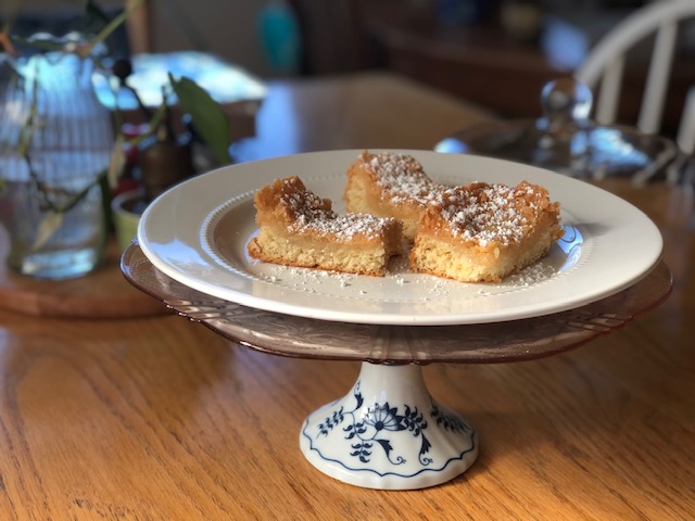 I went to Deb Perlman’s blog, Smitten Kitchen, and looked at her recipe for St. Louis Gooey Butter Cake. I had been wanting to make this recipe for years. And it was now time. I did indeed make it (tweaked only a few things), and it was delicious! Although not exactly how I remembered it. But as I said to my sister Jane, it’s hard to compete with a memory.