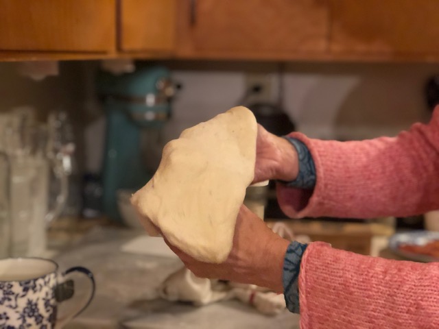 5. Turn rested dough out onto a lightly floured work surface, and knead the dough for about 3 minutes, until smooth and springy.