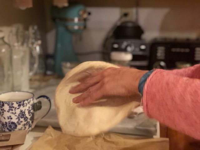 And the end result? A light, tender, crispy bubbly crust that you would only expect to find at an upscale pizzeria. This recipe came to me from my friend Joe, who loves biscotti. He emailed the recipe to me a while ago, but since I already had a recipe I loved, I didn’t pay too much attention. Until I had extra “00” flour sitting around. This is based on Roberta’s Pizza Dough Recipe from NYT cooking. I only changed it a little bit. And it is so very good. It is worth your time and effort to make this… to go to the store and get the special flour… just do it. Also, take a look at the original recipe (link included above). I found it super helpful to watch the video of the guy shaping the pizza dough. He makes it look so easy. I remember thinking to myself that it wouldn’t work that way for me. But it does.