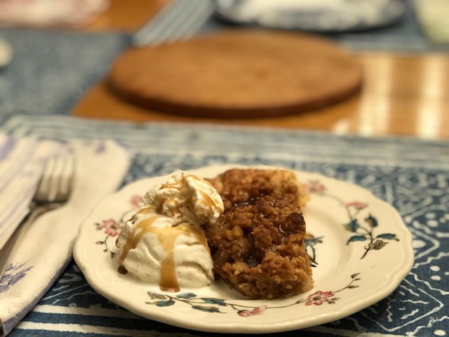So, here is my version of this wonderful dessert, using my favorite pie crust, my favorite apple filling, and my favorite crumb topping! I also bake it a little differently to ensure a crispy crust (no soggy bottom please). I have not changed the toffee sauce except for omitting the bacon grease and reducing it to just one quarter of the original amount… a little goes a long way!