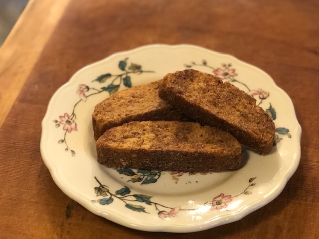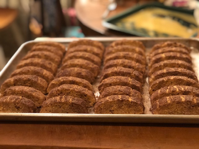 I’m not going to pretend to know the history of this wonderful treat, but I do know my own history with it. Mandelbrot is a traditional Jewish cookie, and I have memories of enjoying them back in St. Louis, with my friend Lisa, when we were kids. Lisa’s mom used to make Mandelbrot, and it was so very good.