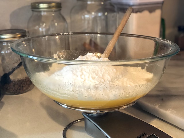 This recipe is a hodge-podge of many recipes that I looked at online (Lisa’s recipe was buried in storage somewhere). I started out making Tori Avey’s recipe, then got other ideas from both the King Arthur recipe and Claire Saffitz’ recipe, and with the assistance of many taste-testers, this is what I ended up with, and I’m super happy with it. I hope you try this recipe, and if you do, let me know what you think. Warning! This recipe takes several hours, but not a lot of hands-on time. It’s worth it.