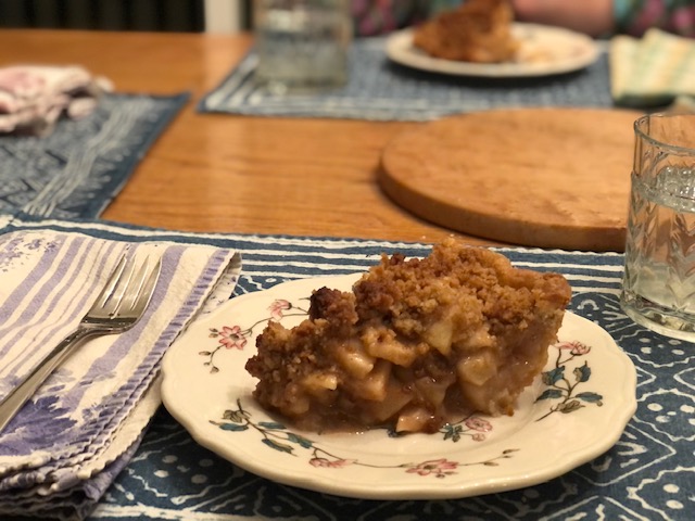 Everyone always says pies are best the same day they are made, but I must tell you, this one was fantastic on day #2, even cold!!! Everything about it was right. Flaky crust, flavorful apples with just the right amount of tenderness, caramelized edges, and a tender-crisp crumb topping. I am going to cry now. Tears of joy.