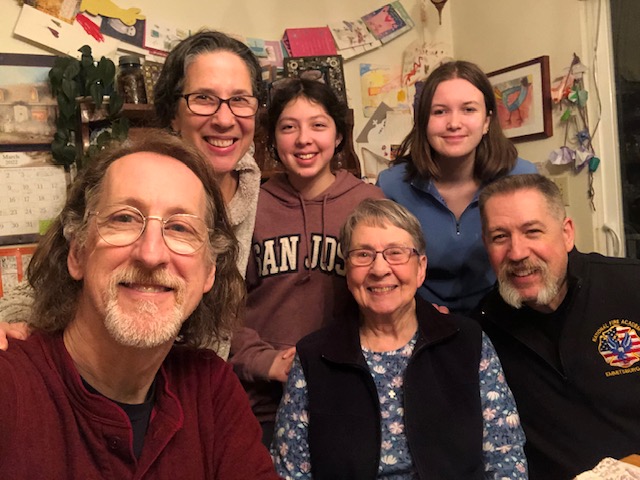 Front row: Matthew on the left, Barb in the middle, Ben on the right. Top row: me, Millie, and Mara.