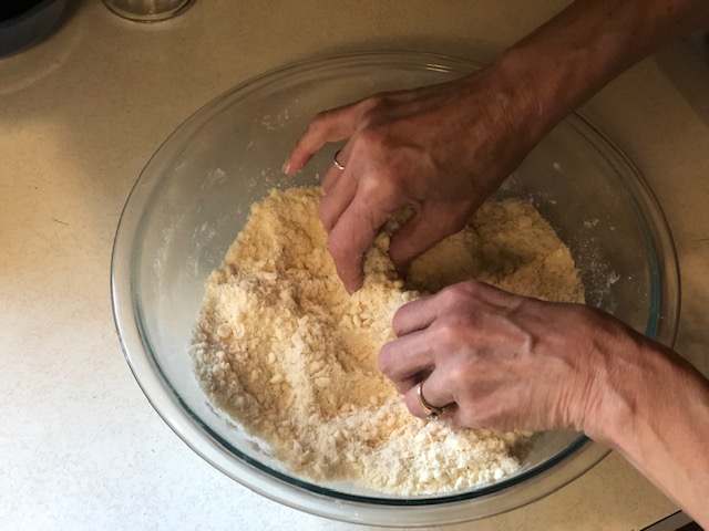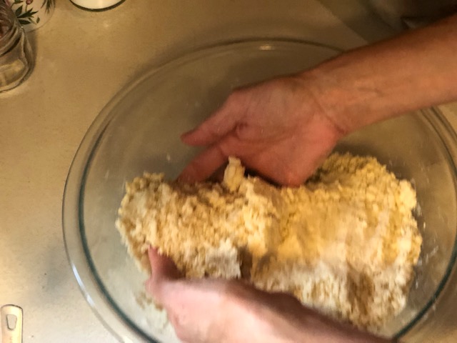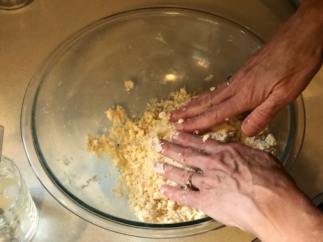 7. Get your fingers in the dough and quickly flatten any larger pieces of butter you find.   This part is fun, because aren’t we trained to not touch the butter???
