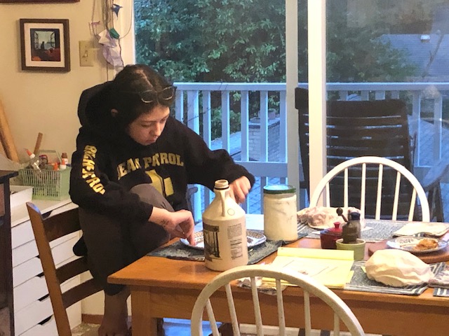 Mara said to me, “Yes, mom, I know, I know. When you were a kid you walked to school backwards in the freezing snow, screaming all the way to school because it was so cold!” Could it be that I have become that parent, the one who says, “When I was your age…”, but it’s true! I remember many a cold, snowy St. Louis winter’s day, walking backwards to school, because if you walked head-on into the biting wind, it would freeze little icicles in your nostrils and sting your nose and cheeks. After the girls left for school, I looked outside and felt the calm and quiet that always accompanies the first snow. I said to Matthew, “It really does kind of feel like a snow day, doesn’t it?”