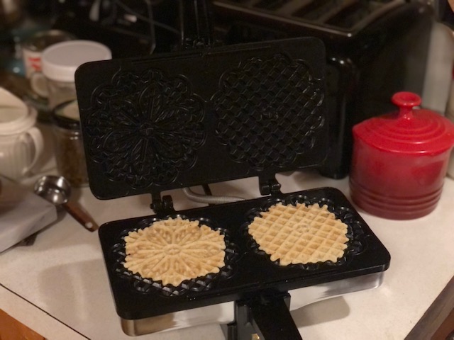 *The pizzelle iron my neighbor loaned me is a CucinaPro non-stick pizzelle maker, and it works well. But for my own, after doing a lot of research, I have ordered a pizzelle iron from C. Palmer Mfg. Co. Inc., a family owned and run company founded by an Italian immigrant (Carmen Palmieri) in the 1940’s. I get excited about things like this. I will give an update as to how the machine works… stay tuned.