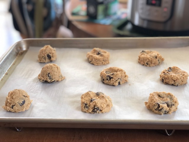 ***Tip: if you end up with the last of the dough that is not enough to make another decent sized cookie, divvy it up into small bits and tuck one bit underneath each of the scooped out cookies. Waste nothing! I know, you might just want to eat that extra bit, but for those of you that don’t like eating raw cookie dough…