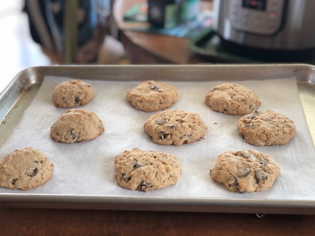 The next day, my daughter Millie asked me if these monster cookies were going to be my next phase (meaning a recipe that I tweak over and over again to get it just right). I told her absolutely not. But the truth was, I did feel like making them again, because there were things that I thought just weren’t right. Like, they were way too sweet! And they were a little dry, too. So after several more batches, here is my version. I upped the salt, reduced the oats a bit, increased the peanut butter, added more semi-sweet chocolate chips, and reserved the M&M’s just for decorating the tops of the cookies. I actually tried making a few without M&M’s because they are so sweet, but found that the crunch of the candy coated chocolate is essential to the character of these cookies. Maybe you’ll need to run to the corner grocery store and get some M&M’s?