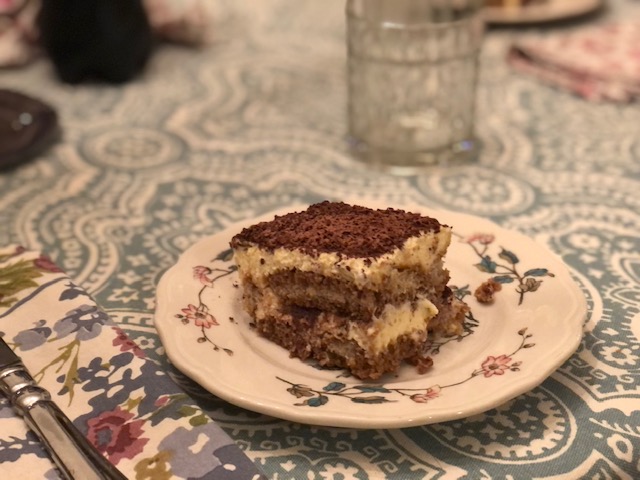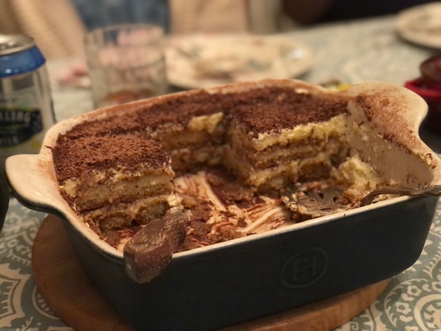 I used Alison Roman’s tiramisu recipe that I found on the NYT Cooking app. It was fairly straightforward and easy – yay! But I found that it needed more of the mascarpone/whipped cream, and less soaking of the lady fingers (they get too soggy if they are over soaked). So I doubled the cream mixture and went lightly on the soaking, and found that there was too much cream and the lady fingers weren’t quite soaked enough! Seriously, it’s just a matter of taste. Both times I served the tiramisu to guests and both times everybody loved it. It’s just me being extra picky.