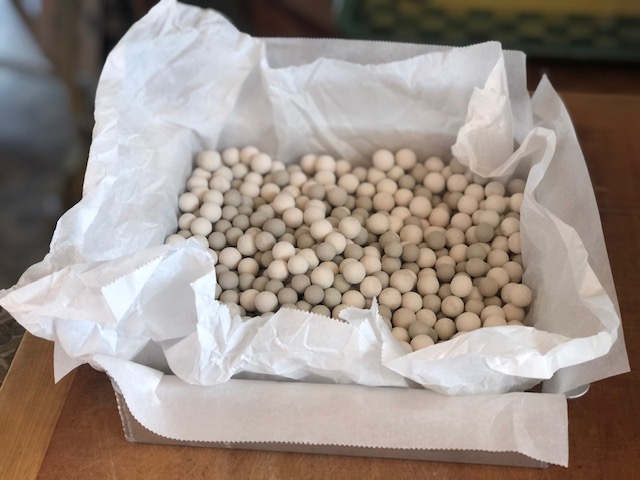 8. When the crust is done baking, carefully remove the parchment paper containing the pie weights and set into a bowl. The crust should look darker, and have darkened edges. If you like a crunchier crust, you can pop it back into the oven for another 5 to 10 minutes. Remove from oven and turn the temperature down to 350°.