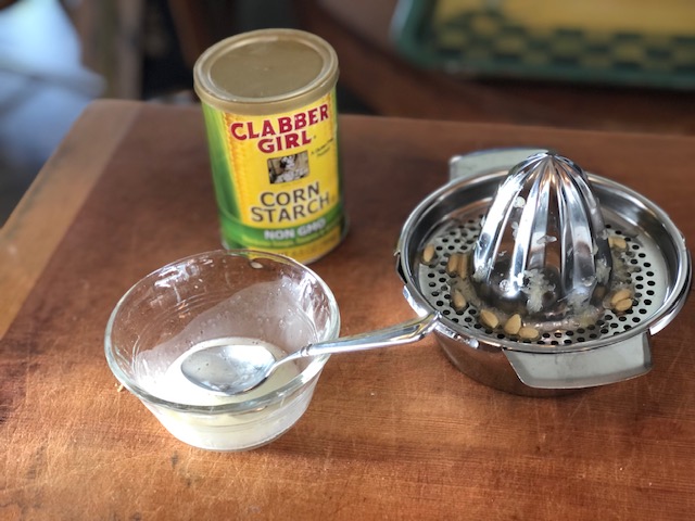 7. Remove apples from heat. Mix a couple of teaspoons of the fresh lemon juice with the teaspoon of cornstarch. Drizzle over the hot apples and mix well. Set aside.