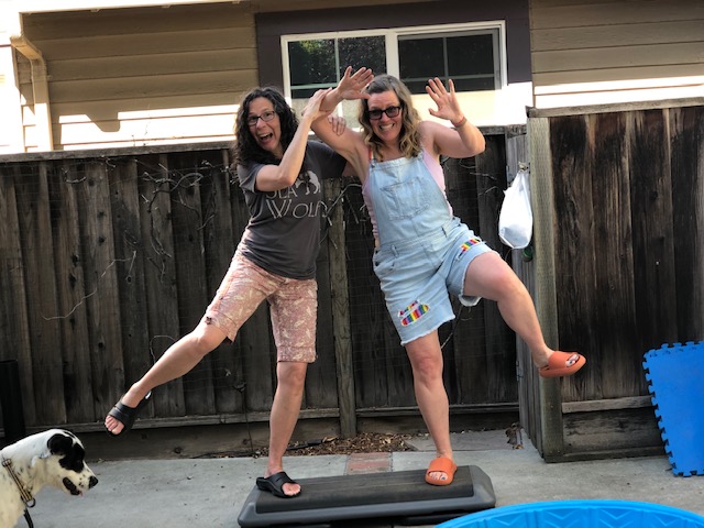 Me and my bestie Stephanie, being silly in her backyard step space :).